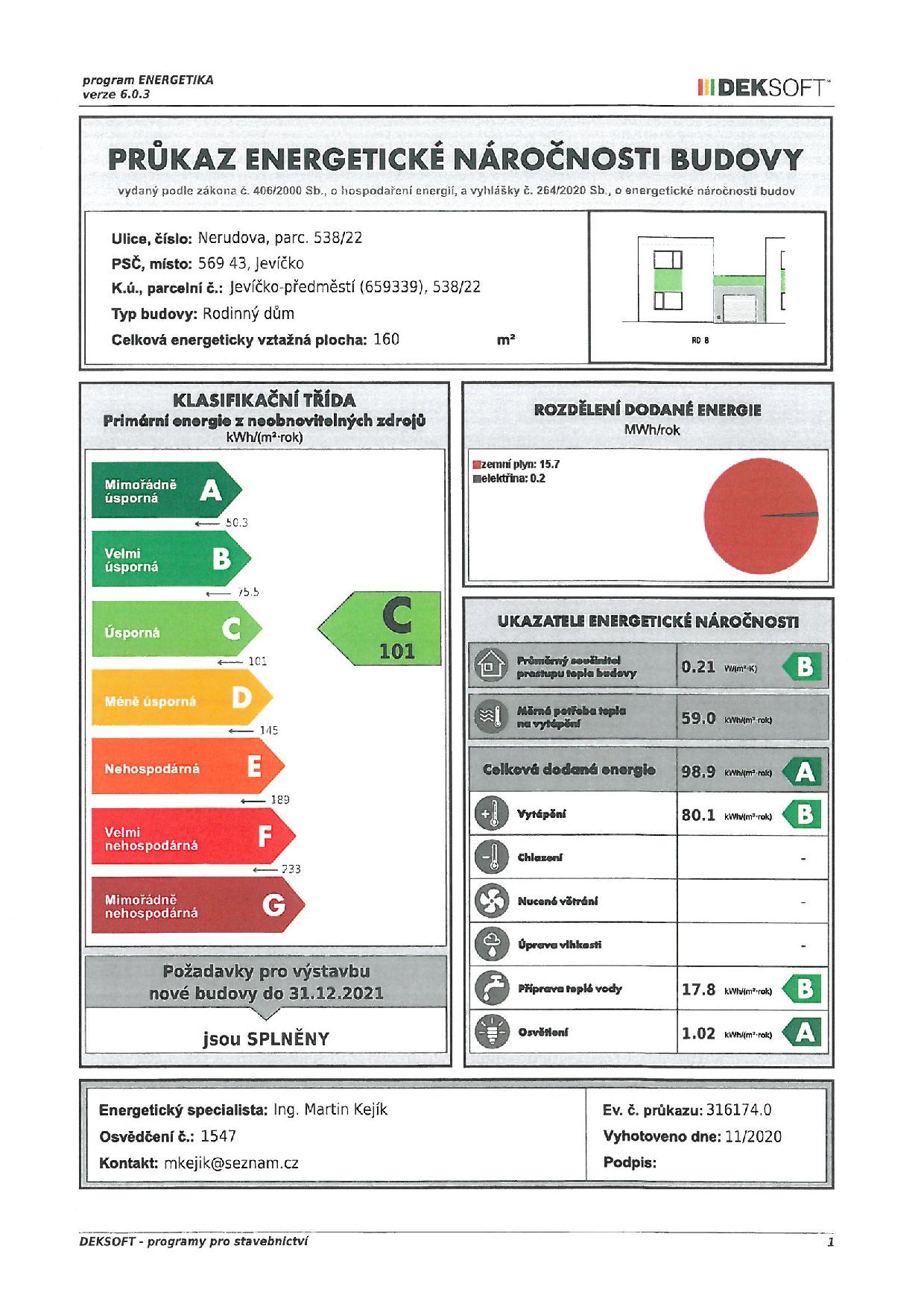 kondenzační plynový kotel a podlahové topení zajišťují efektivní vytápění a ohřev vody.
